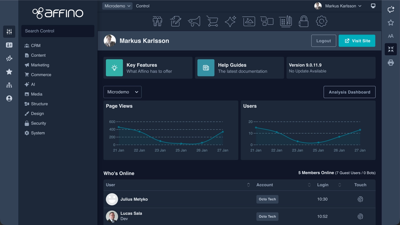 Affino is a unified digital platform designed for charities that need to deliver modern, trusted, and scalable digital services. Unlike traditional stacks built from a CMS, plugins, CRM systems, analytics tools, and external AI widgets, Affino brings everything together into a single system that controls: