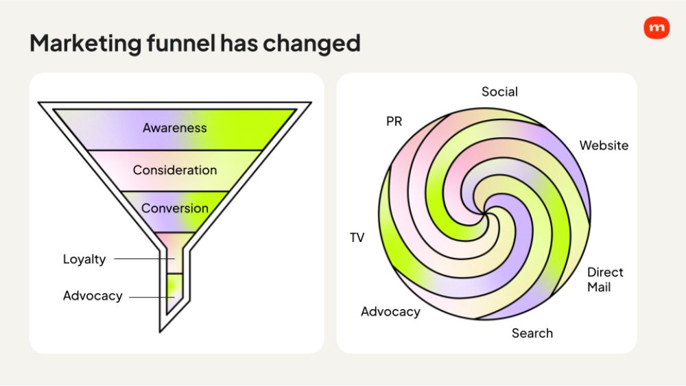 This transformation comes at a time when the traditional marketing funnel has evolved into a complex ‘swirl,’ as demonstrated in the diagrams below: