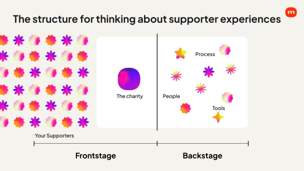 In any transaction, there are aspects of the experience that a customer interacts with (Frontstage), and the aspects they do not (Backstage). For supporters interacting with charities, the Frontstage experience is any touchpoint that is designed to inspire action through donation, volunteering, or advocacy.